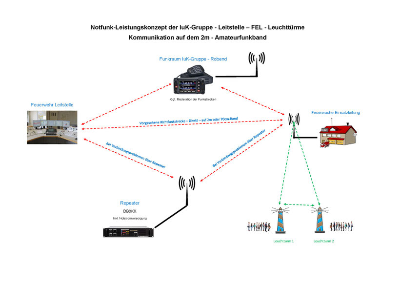 - Einrichtung von Richtfunkstrecken von der Kreisleitstelle zu den entsprechenden Krisenpositionen (oder anderen notwendig zu verbindenden Örtlichkeiten)